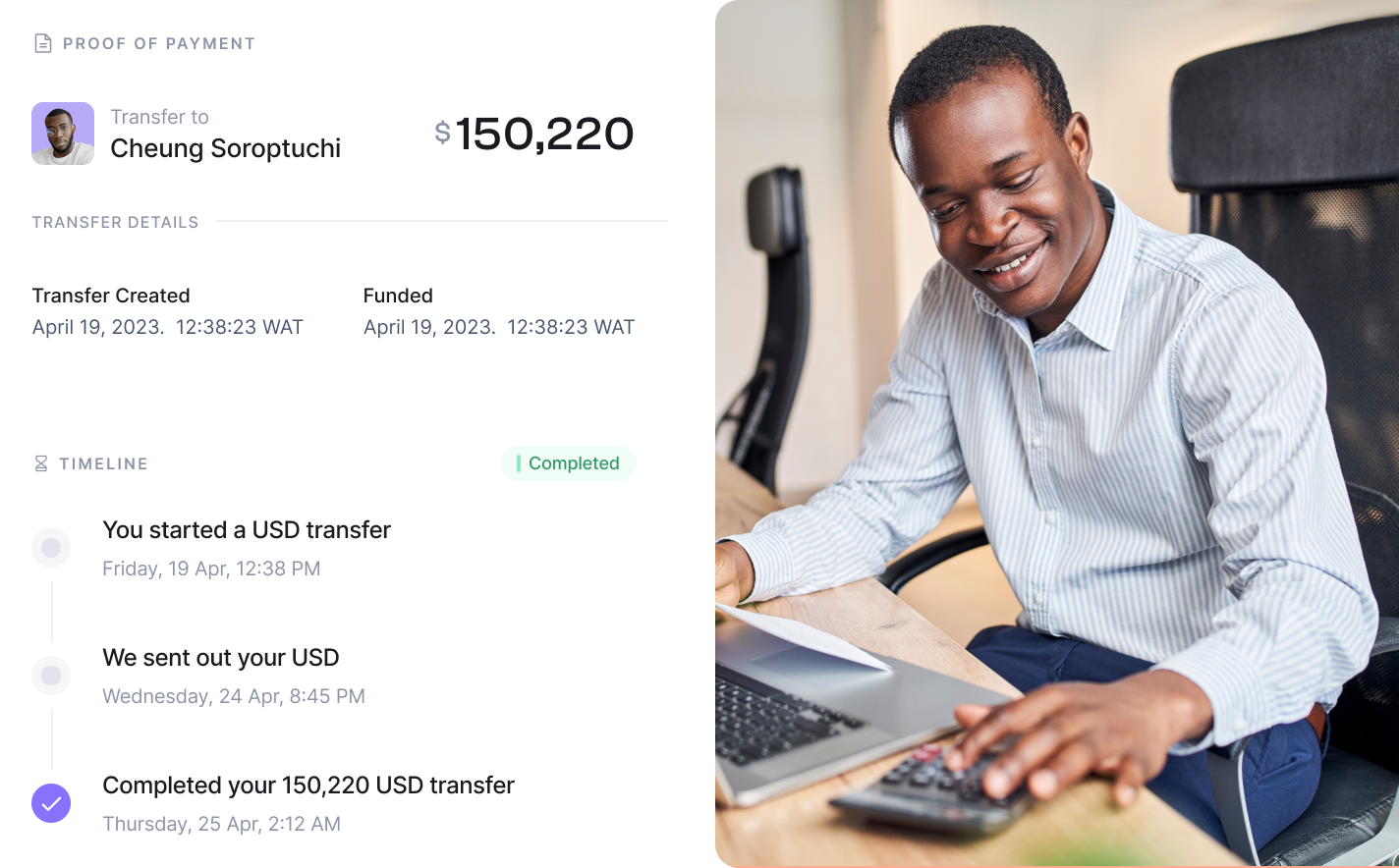 Enjoy real-time tracking for your transfers.